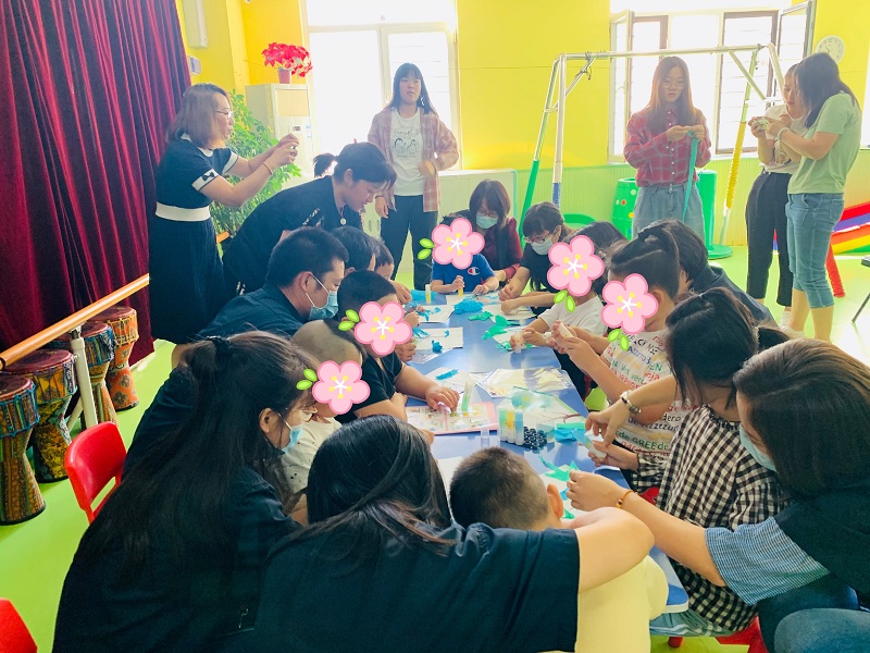 活動(dòng)現(xiàn)場(chǎng),愛(ài)晶園的劉園長(zhǎng)介紹了園內(nèi)特殊教育兒童的基本情況,并帶大家參觀了兒童發(fā)展中心,走訪班級(jí)看望孩子們。金橋支部贈(zèng)送了四套實(shí)木桌椅和四大箱兒童教具,用來(lái)豐富孩子們的學(xué)習(xí)生活。因?yàn)楣陋?dú)癥的孩子們需要更多的陪伴,黨員同志們和基金會(huì)領(lǐng)導(dǎo)與愛(ài)晶園的寶貝們共同制作了創(chuàng)意手工,希望孩子們?cè)趷?ài)心的澆灌下,能夠像小樹(shù)一樣,更加健康茁壯地成長(zhǎng)!