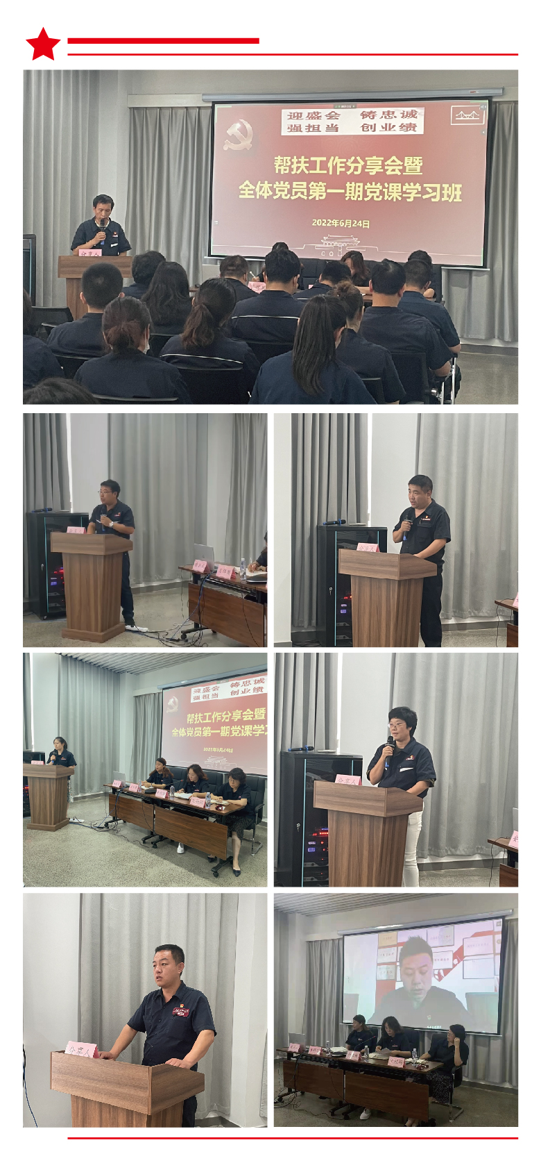 自“迎盛會、鑄忠誠、強(qiáng)擔(dān)當(dāng)、創(chuàng)業(yè)績”主題學(xué)習(xí)宣傳教育實(shí)踐活動開展以來,金橋焊材集團(tuán)黨委各黨支部通過支部書記講黨課、開展黨員結(jié)對幫扶等多種形式開展主題黨日活動,凝聚維護(hù)核心、鑄就忠誠的正能量,提振干事創(chuàng)業(yè)、擔(dān)當(dāng)作為的精氣神。6月24日下午80余名黨員參加了線下舉辦的幫扶工作分享會暨全體黨員第一期黨課學(xué)習(xí)班。