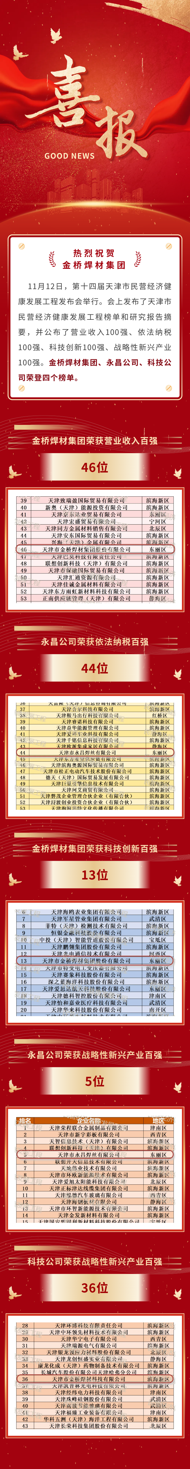喜報!金橋焊材集團入選第十四屆天津市民營經(jīng)濟健康發(fā)展工程多個榜單